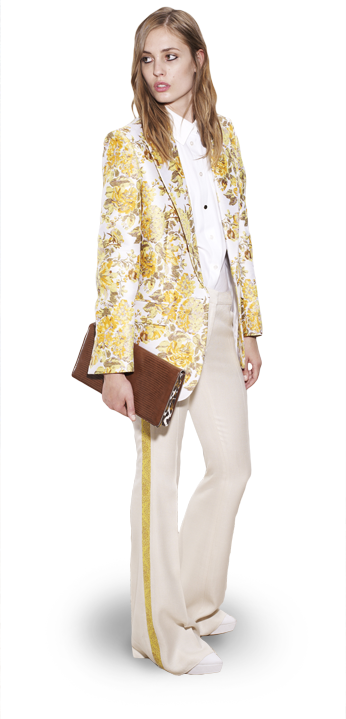 Even if we look to the runways for Spring 2013, you’ll find that there’s plenty of floral on the bottom. Floral isn’t meant just for dresses, skirts, or blouses anymore. It can be an unexpected pop of femininity or juxtapose more masculine pieces for day or evening. For example, we’ve seen this in collections from Jason Wu, 3.1 Phillip Lim, Lela Rose, Paul & Joe, & Tanya Taylor. Here, complimenting colors in your floral prints can work to accentuate a factor of luxury in your look, especially when it comes to jackets, cardigans, scarves, & heels.