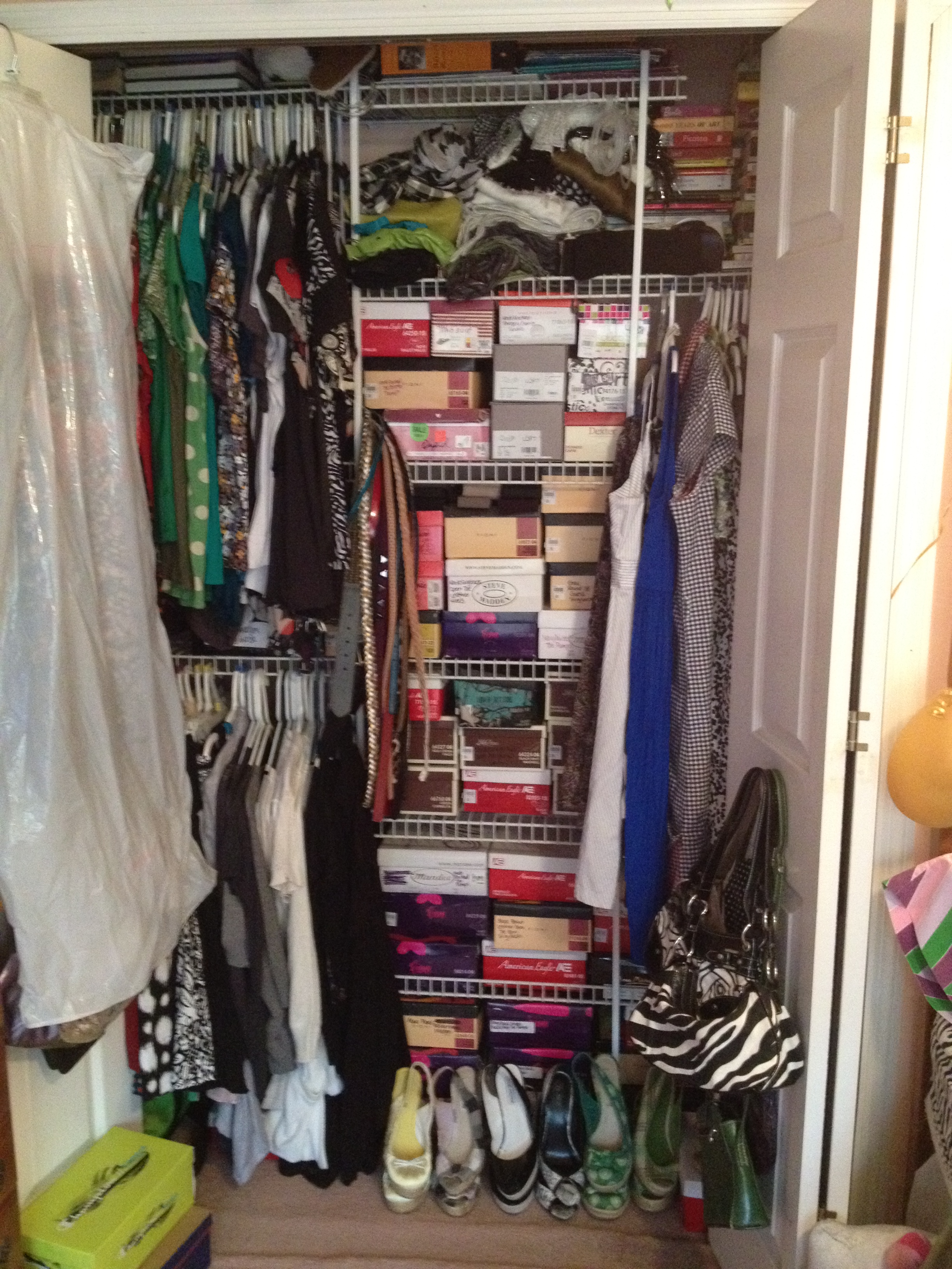 The time for spring cleaning came around a little late for me, considering that I’ve been super busy with my new job.  However, this weekend I was able to torture myself with the big spring-summer closet switch, which is usually a day-long process. To some bloggers out there, this may seem like a horrible mess of clutter & packed in boxes/hangers, but this is what I have & I’m making the best of it.  I was happy to reunite with old friends (summer shoes & dresses)- some of which (the dresses) were unfortunately too big for me, since I have fortunately lost nearly 30 pounds in the last 2(ish) years.  I’m making due with the wardrobe that I have since there’s just no way for me to spend any extra dough refurbishing some of these baggier items.  I’m getting friendlier with my belts everyday, seeing how well they can cinch me in & transform a once-tight tunic top into a flowy loose-fititng blouse.
