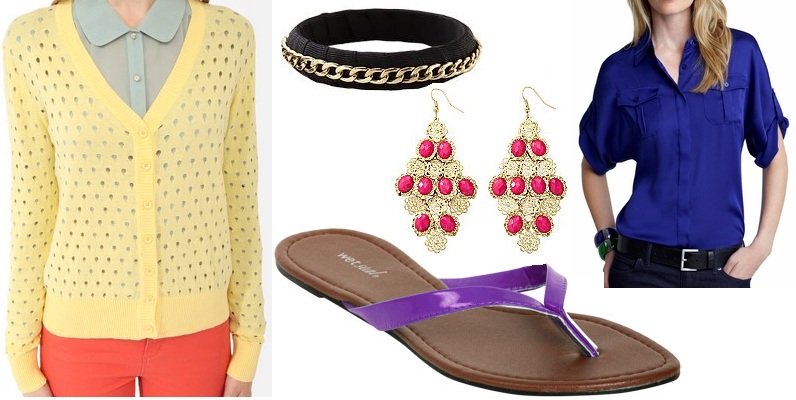 Nothing says classic quite like a button down, & The Limited‘s Collins shirt ($12.99) makes a bold statement in cobalt, but since this is such a great deal, why not splurge on the grey & purple options too? Wear this tucked in with a pencil skirt & pumps or loose over some cropped jeans & wedges. Lastly, I’ve been searching high & low for the perfect pair of purple flip-flops & I should’ve have known that the Lita flip-flops ($3.99) from Wet Seal would be the answer to my prayers. These are perfect for any & every casual event, but if you’re looking for more color variety, have no fear b/c they’re also available in yellow, turquoise, & pink!