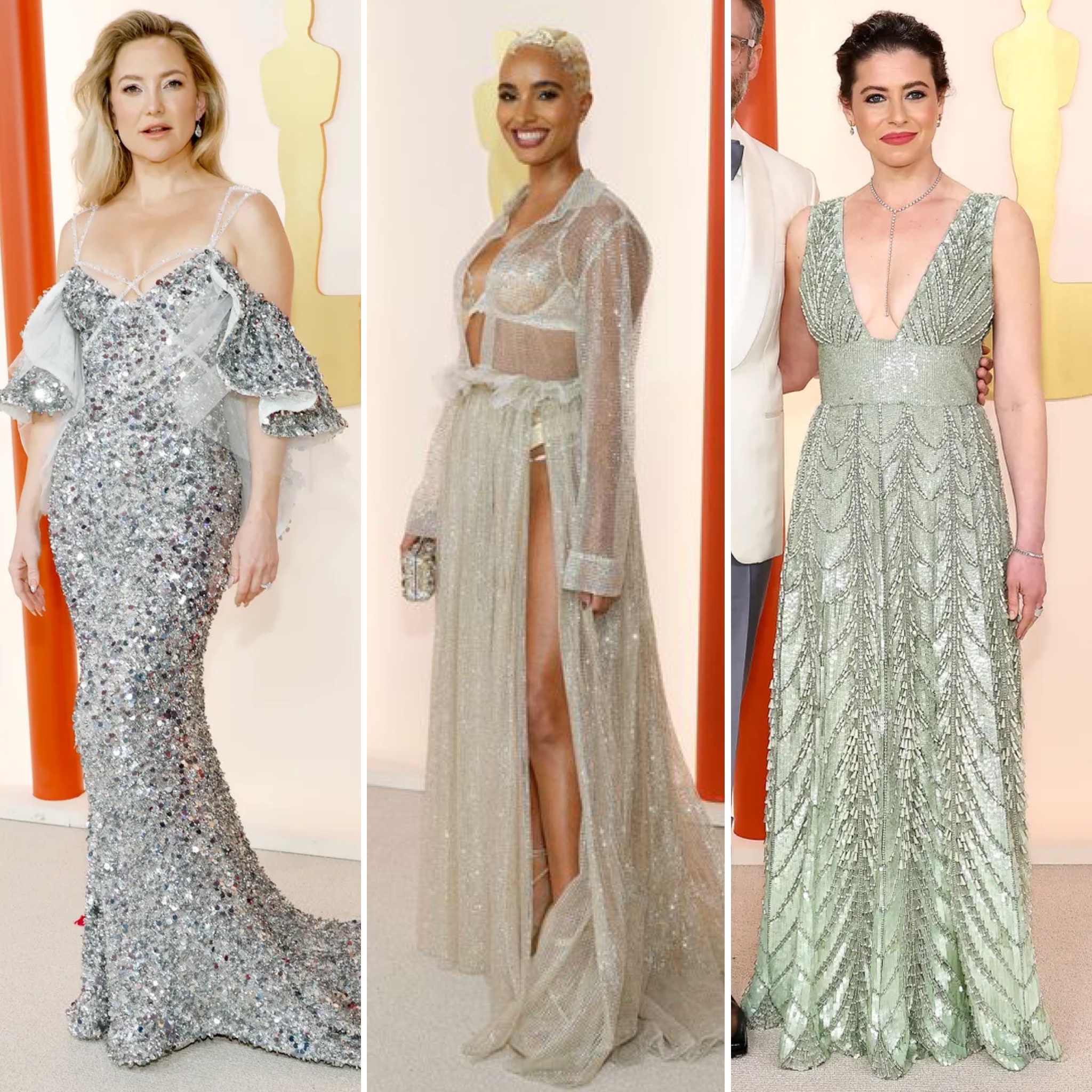 Kate Hudson in a silver Louis Vuitton gown, Aitana Rinab Perez in a gold gown, & Lauren Miller in a